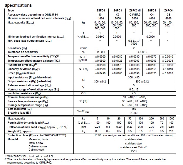 有多種不同的型號(hào)(Z6FD1, Z6FD1, Z6FD1MI, Z6FC4, Z6FC6) 并有不同的精度等級(jí)
