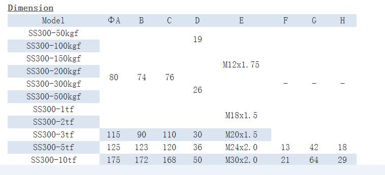 SS300-300kgf SS300-500kgf SS300-1tf SS300-2tf