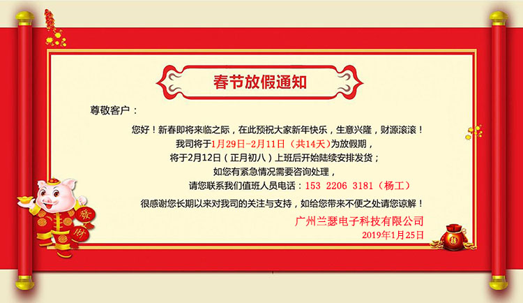 2019年春節(jié)放假通知-廣州蘭瑟電子