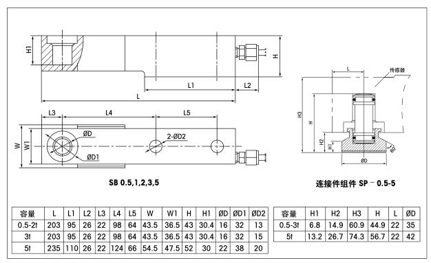 SBH-0.5T(梅特勒托利多) 彎曲梁稱(chēng)重傳感器,稱(chēng)重容量0.5t,承載孔為盲孔,5M電纜