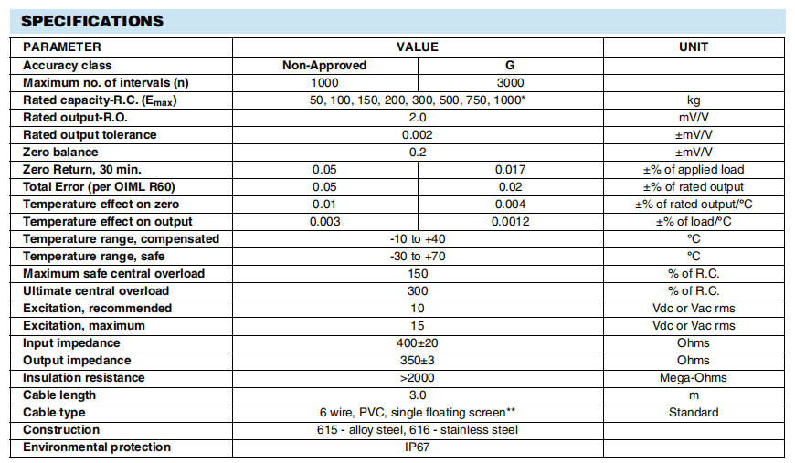 靈敏度 mV/V:2.00±0.010 3.00±0.010