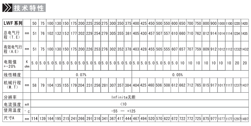 佳重復(fù)度是士0.013mm,而線性準(zhǔn)確度是士0.05%,無斷解像度,固定支架可在鋁槽內(nèi)任何位置作快捷及牢固的安裝。LWF拉
