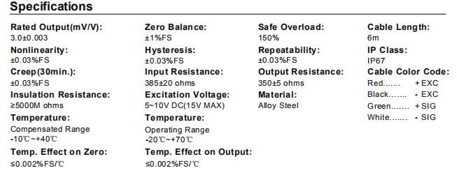 電纜顏色代碼:紅色: + EXC Red:+EXC