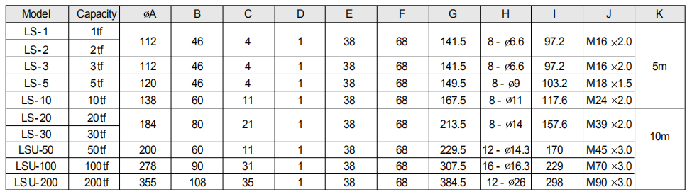 額定型號(hào): LS-1T,LS-2T,LS-3T,LS-5T,LS-10T,LS-20T,LSU-50T,LSU-100T