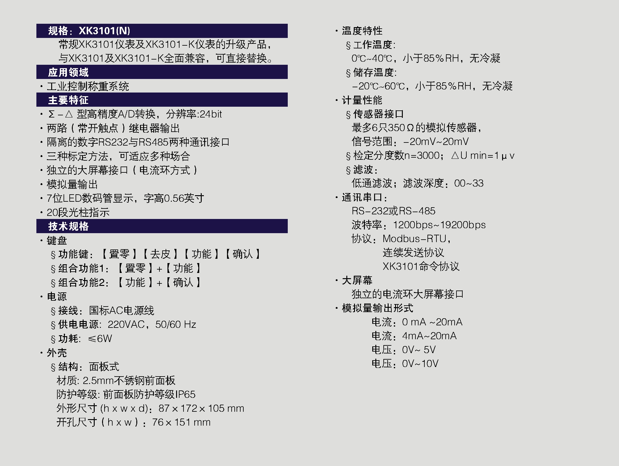 XK3101(N)稱重儀表