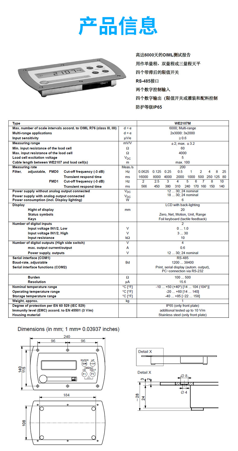 德國HBM WE2107M稱重儀表產(chǎn)品描述