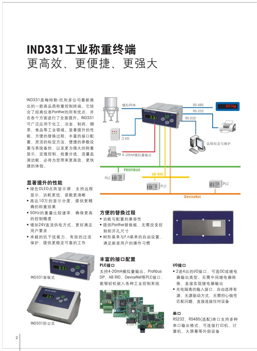瑞士Mettler Toledo 33P10000B000000儀表配置作用: