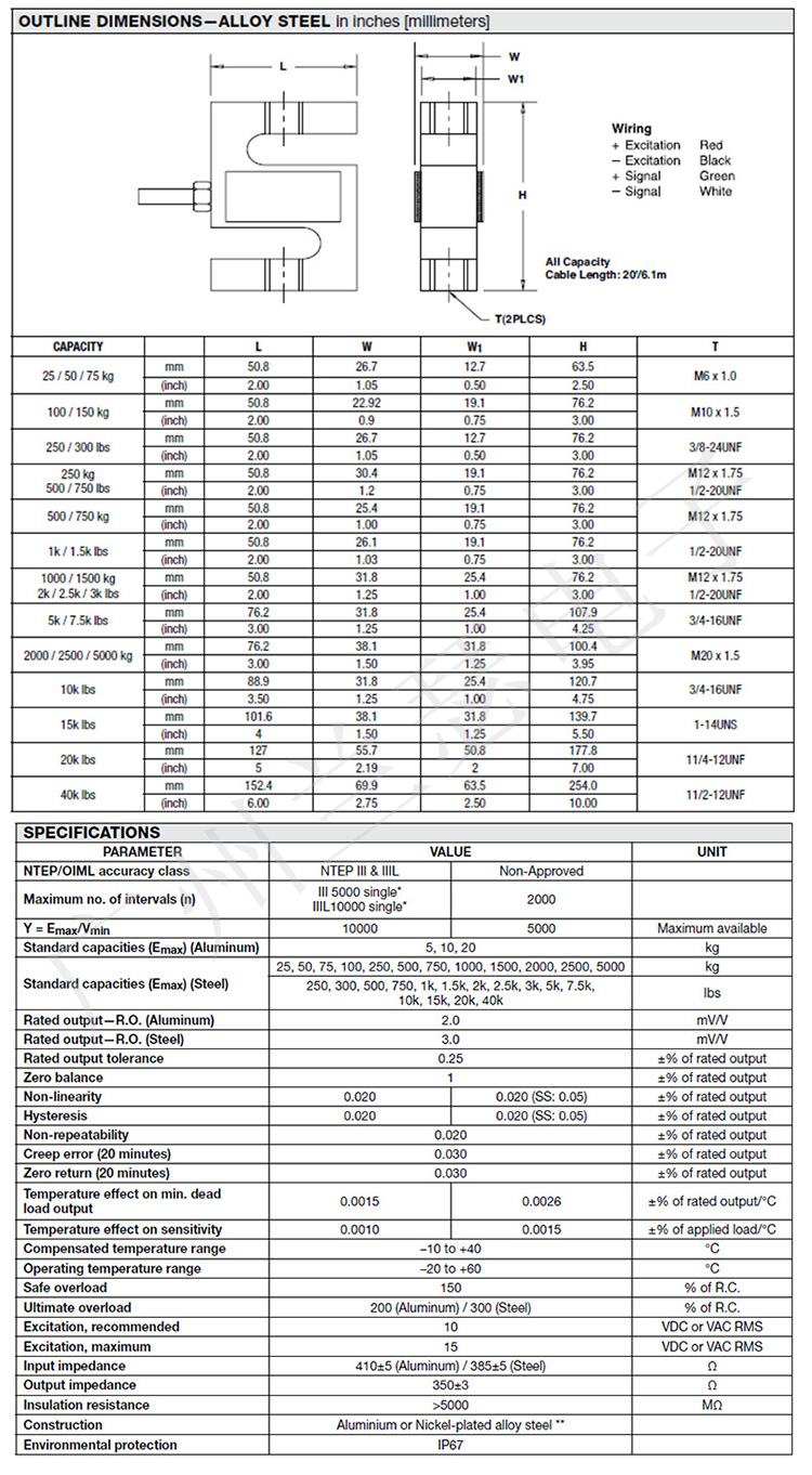 Celtron STC-75kg稱重傳感器技術(shù)參數(shù):
