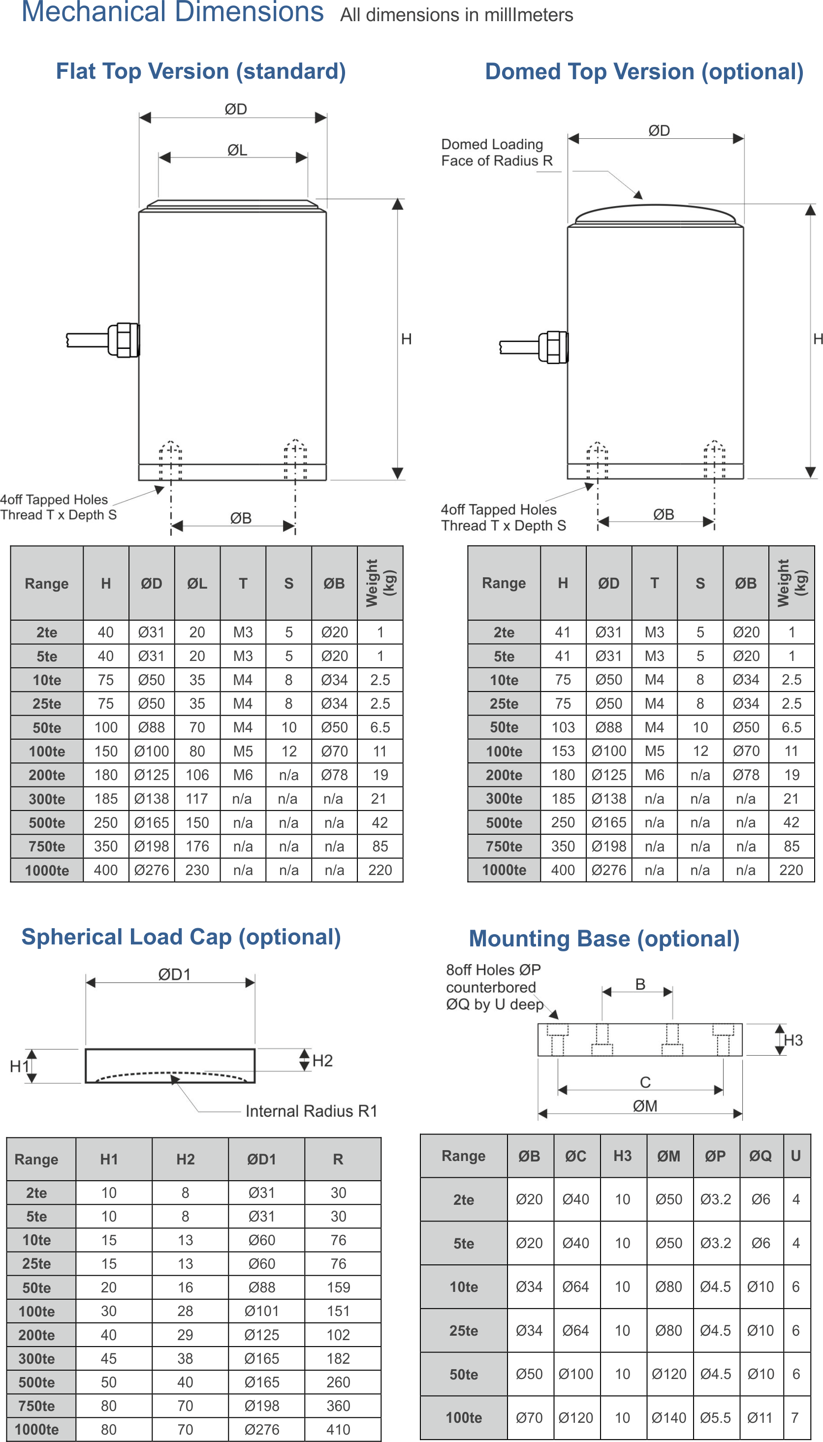 700Ω (2-50tonne), 1400Ω (100-1000tonne)