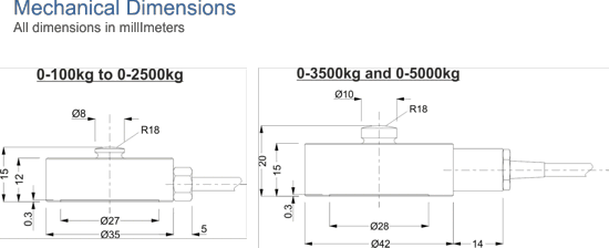 This range of load cells is available with ranges covering 0-100kg to 0-5000kg.