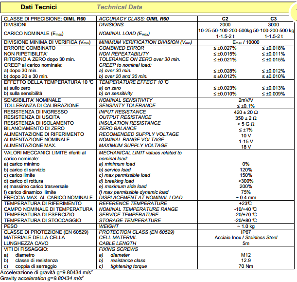 Classi (OIML R60): C2, C3