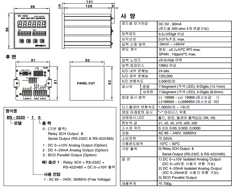韓國Bongshin BS-3520稱重儀表技術(shù)指標(biāo)