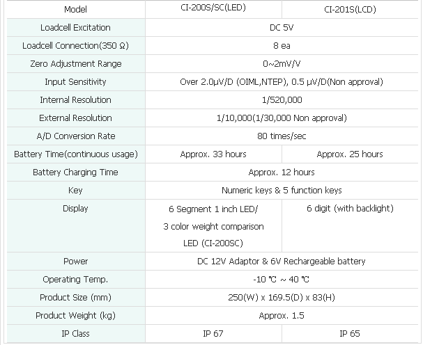 韓國CAS CI-200S稱重儀表技術(shù)參數(shù):