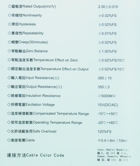 美國AC GX-2-500kg稱重傳感器技術參數: