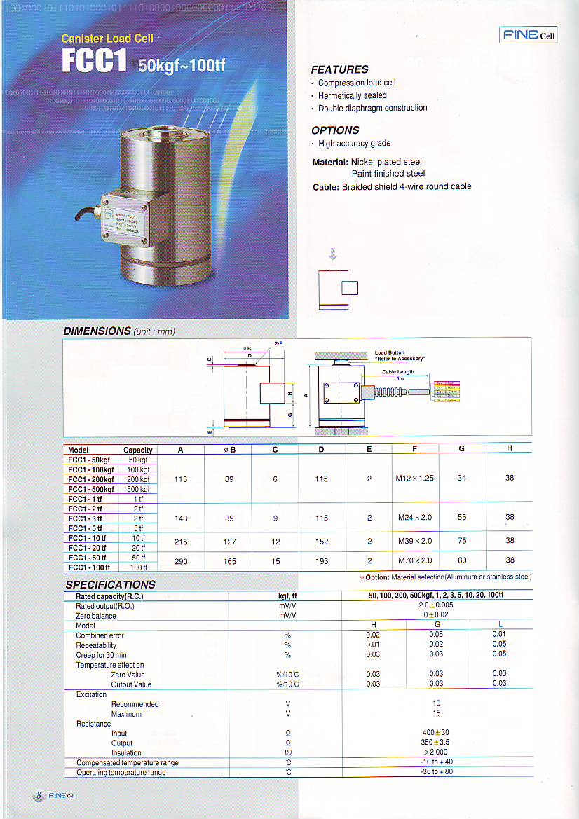 韓國(guó)Fine稱重傳感器FCC1所有型號(hào):