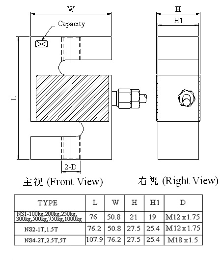 臺(tái)灣Mavin NS1稱重傳感器產(chǎn)品尺寸: