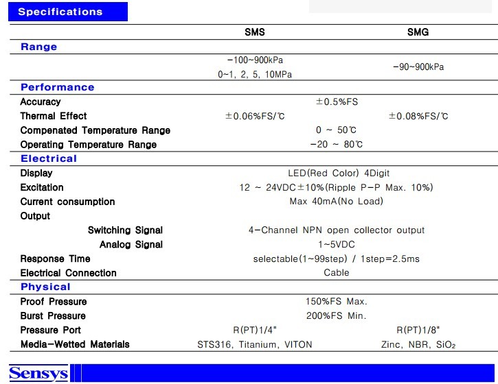 韓國(guó)SENSYS壓力傳感器