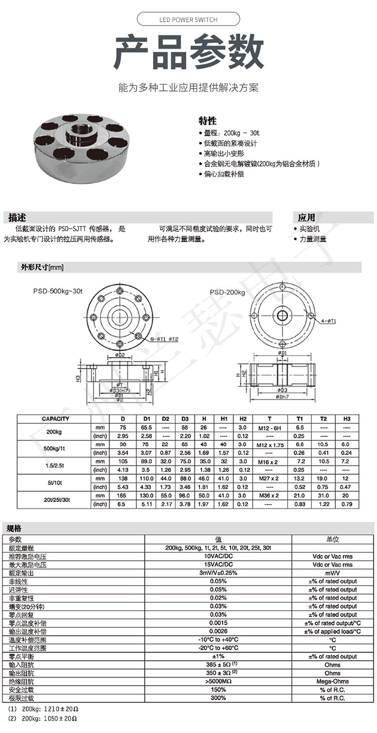 美國(guó)Celtron PSD-5tSJTT稱重傳感器產(chǎn)品參數(shù):