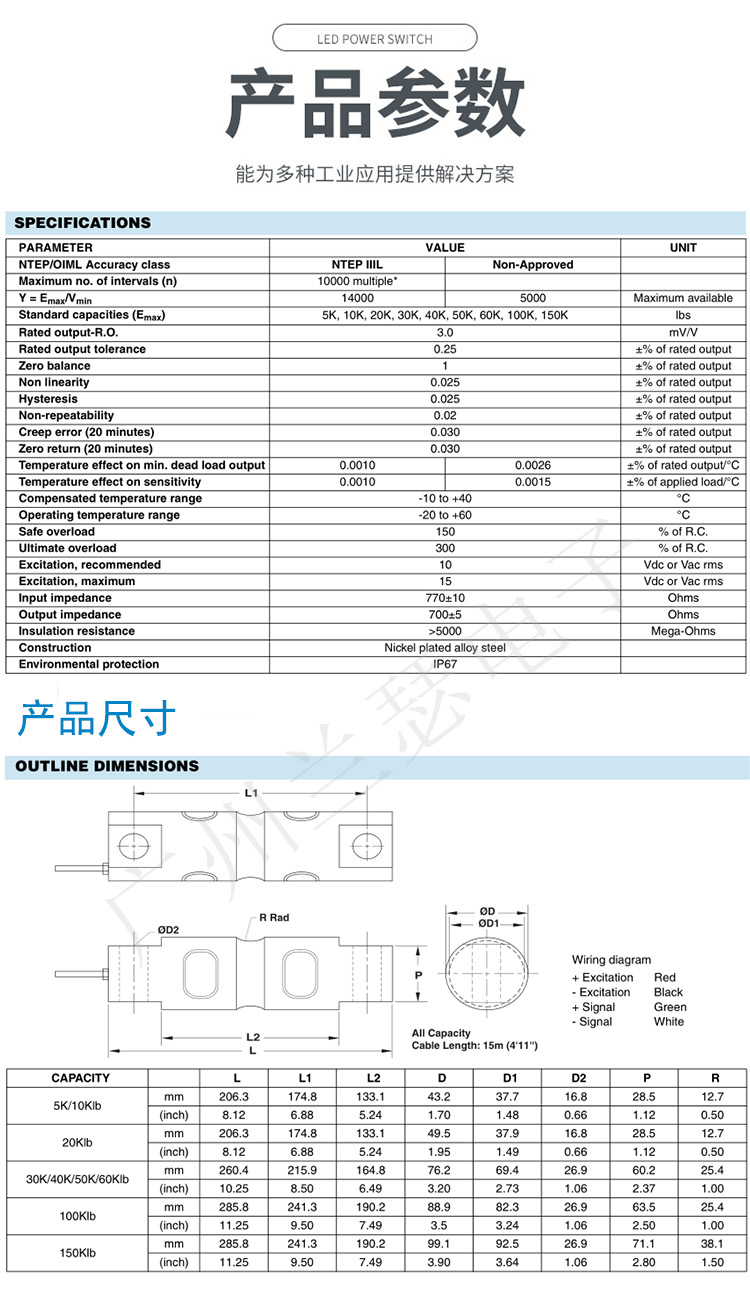 美國Celtron CSB(5KLB-150KLB)稱重傳感器產(chǎn)品參數(shù):