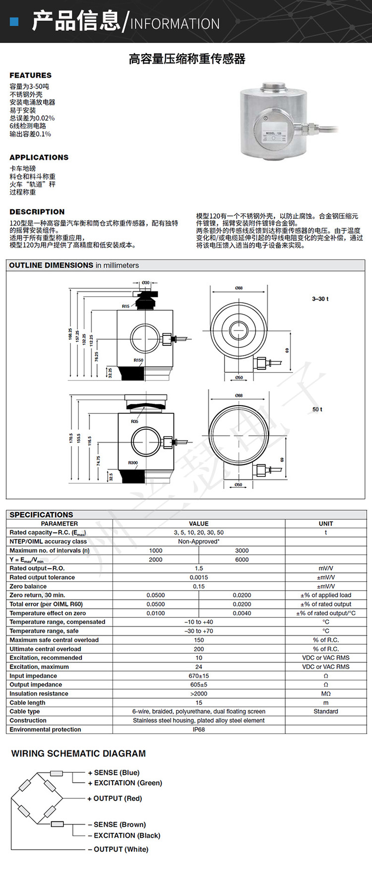 美國Tedea 120-30T稱重傳感器產(chǎn)品參數(shù):