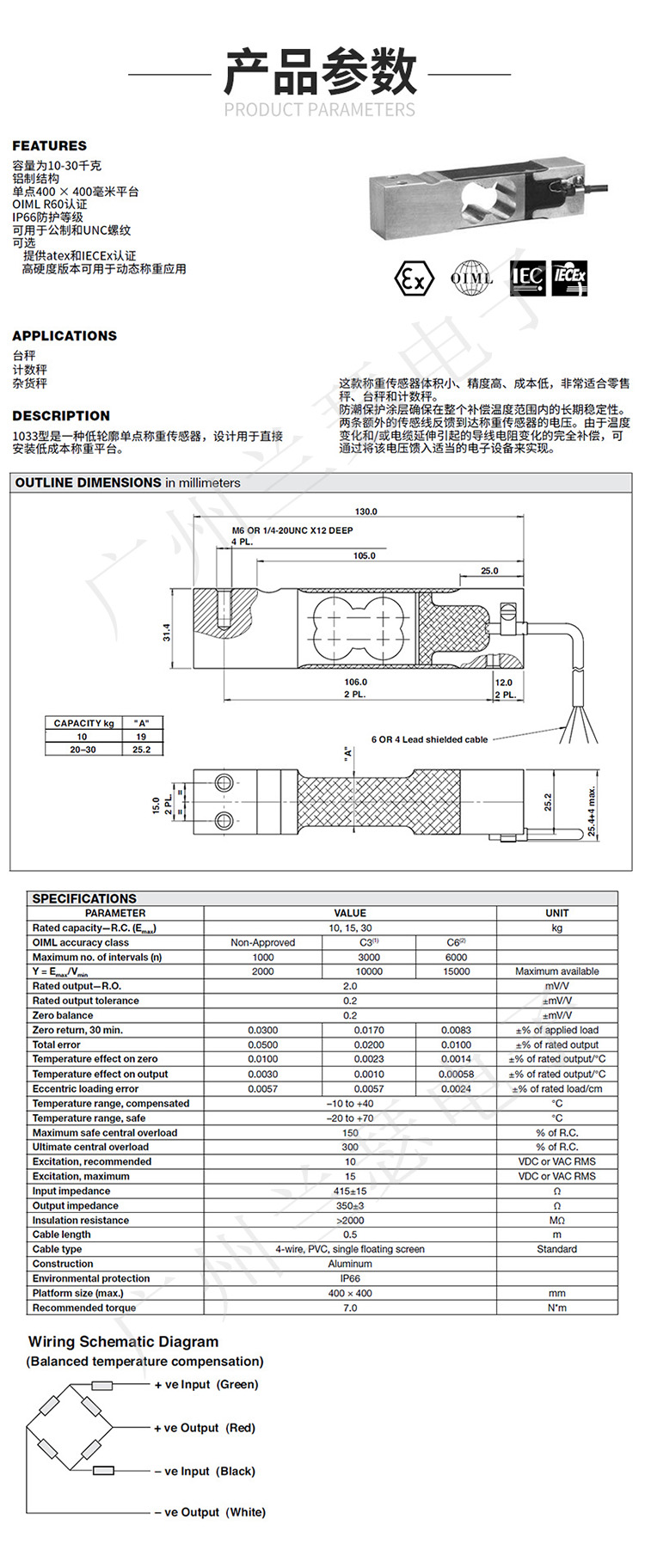 美國Tedea 1033稱重傳感器產(chǎn)品參數(shù):