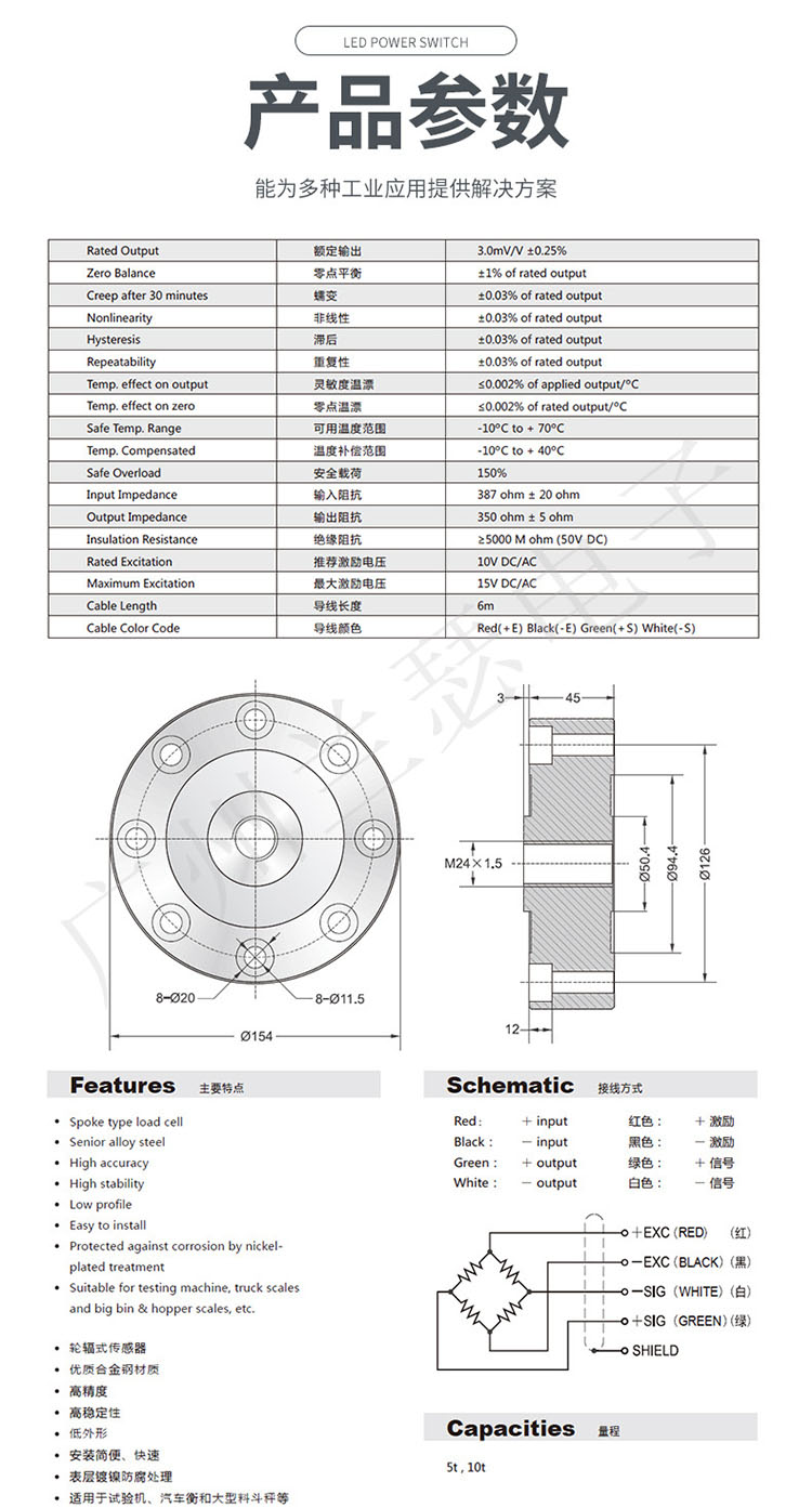 DBSL-SJ-5T傳感器,Transcell DBSL-SJ-10T輪輻式稱重傳感器