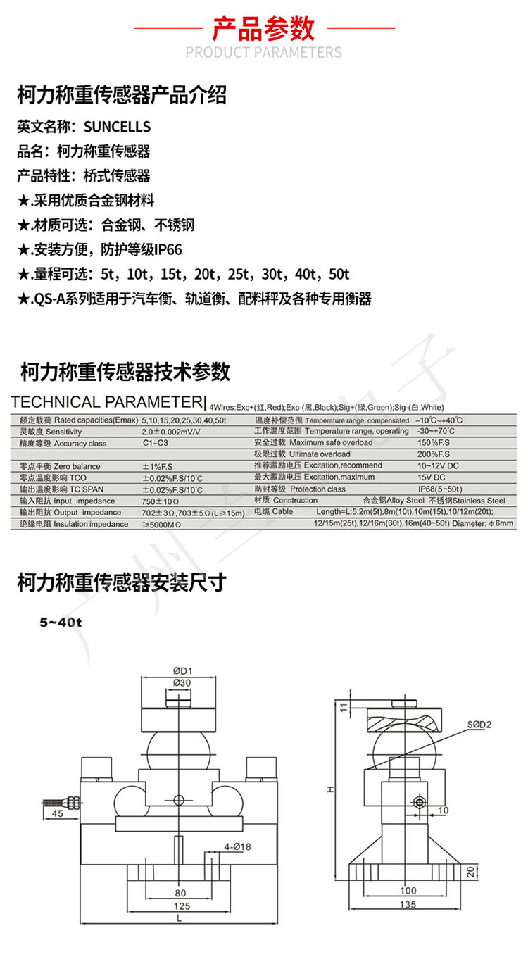 寧波柯力QS-20t稱重傳感器產(chǎn)品參數(shù):