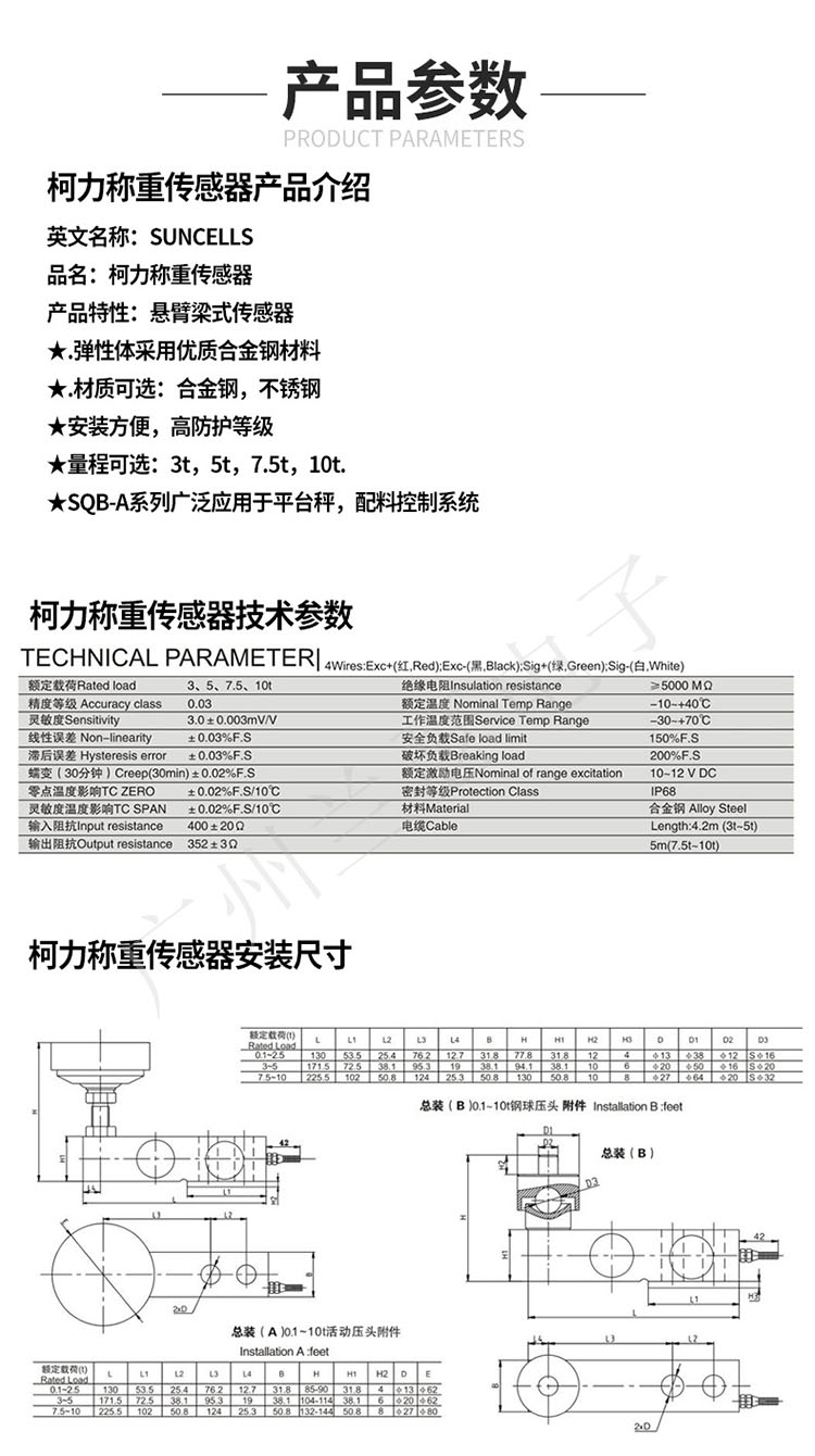 SB-5T,美國SUNCELLS SB-5T稱重傳感器