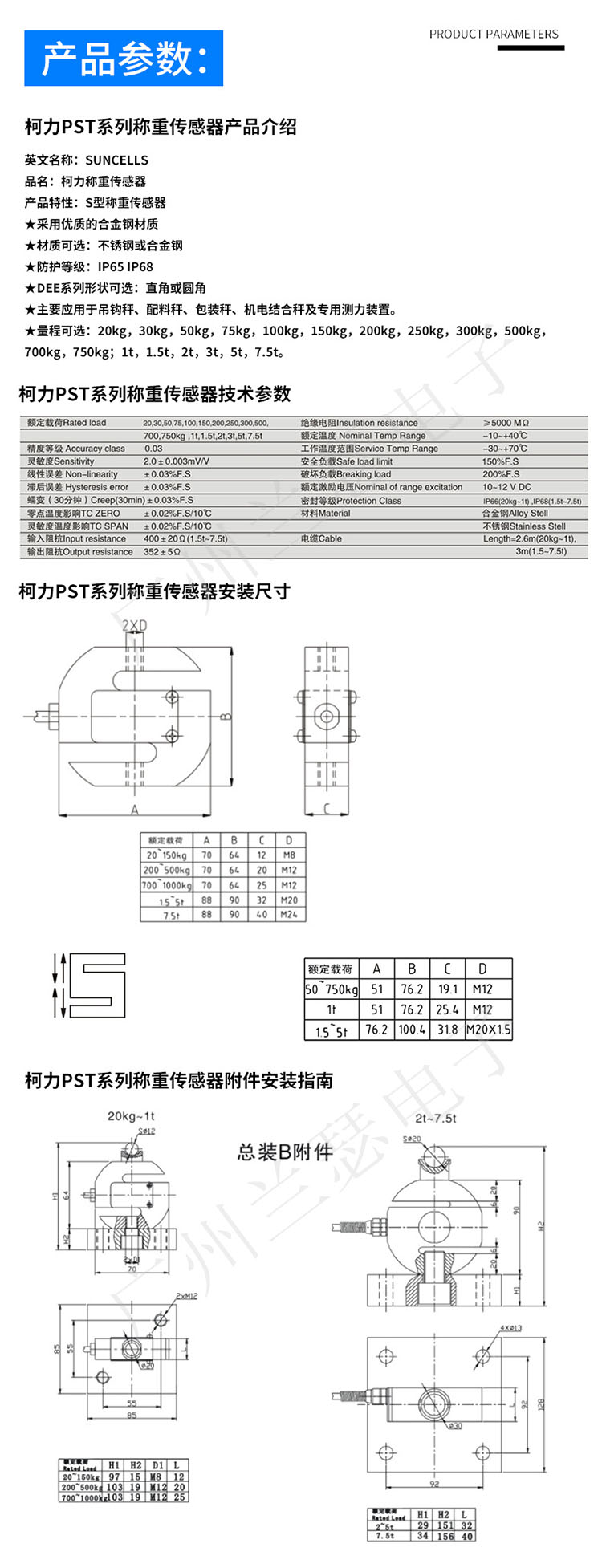寧波柯力 PST系列稱重傳感器完整型號推薦: