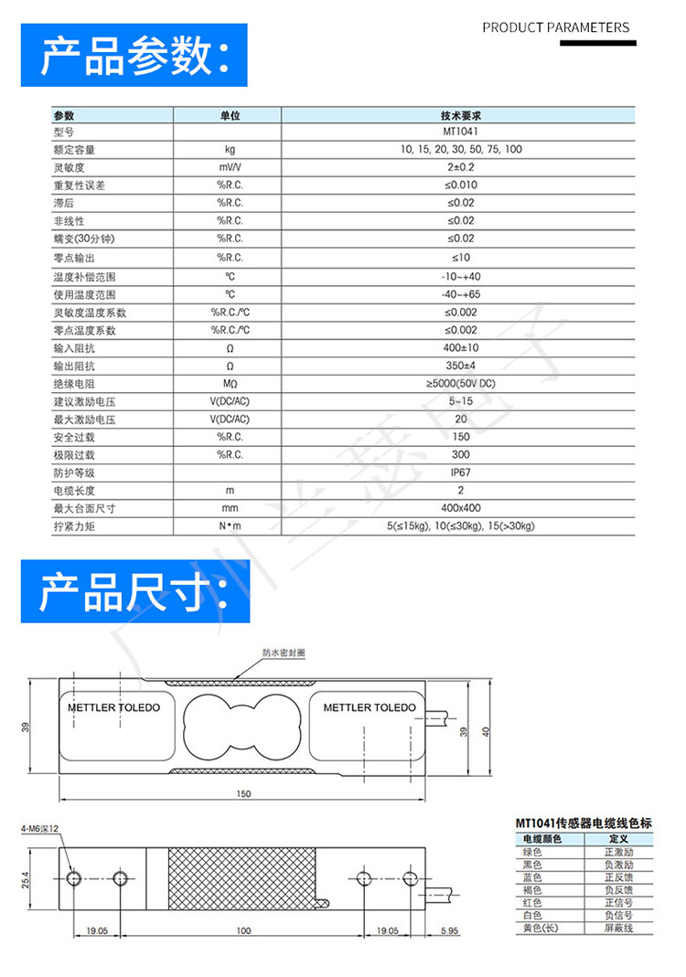 產(chǎn)品名稱:MT1041-30,梅特勒托利多MT1041-30kg稱重傳感器