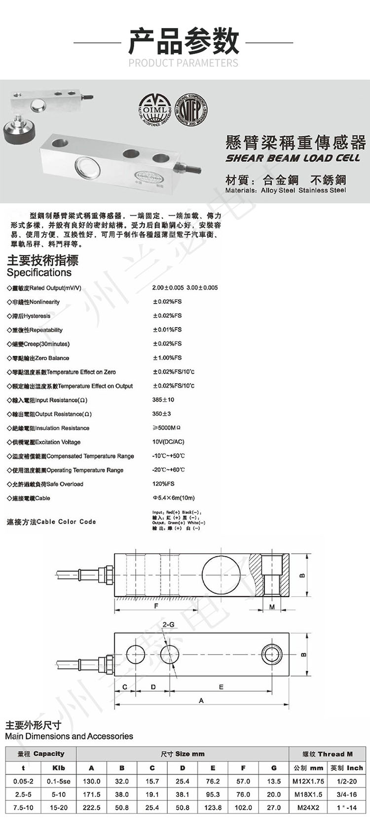 產(chǎn)品類型:懸臂梁式稱重傳感器