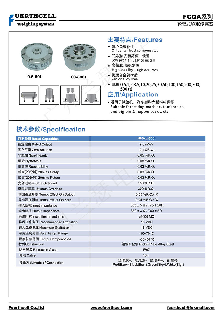 美國FUERTHCELL FCQA-100T稱重傳感器產(chǎn)品參數(shù):