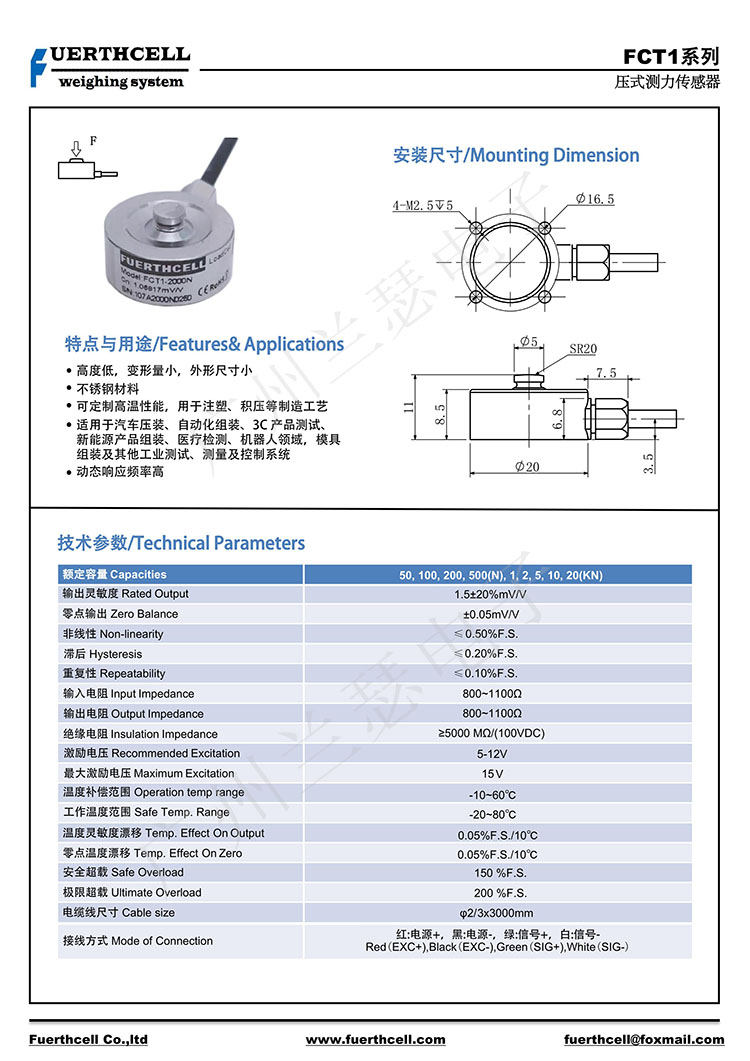 美國FUERTHCELL FCT1-2000N稱重傳感器產(chǎn)品參數(shù):