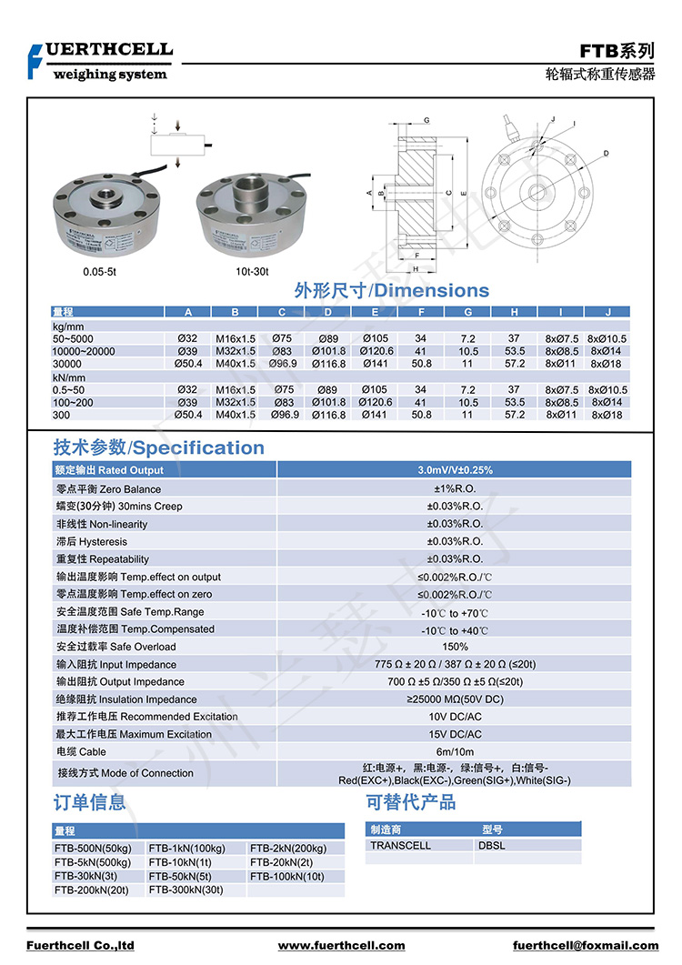 美國FUERTHCELL FTB-2T稱重傳感器產(chǎn)品參數(shù):