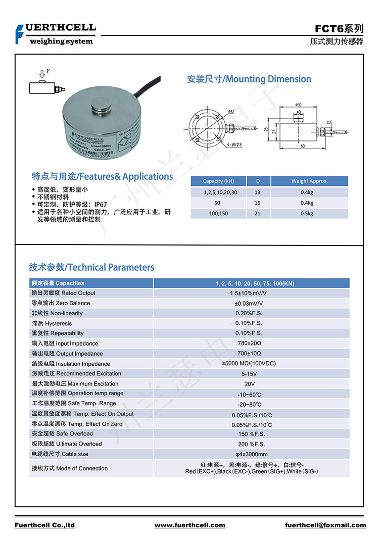 美國FUERTHCELL FCT6-200KG稱重傳感器產(chǎn)品參數(shù):