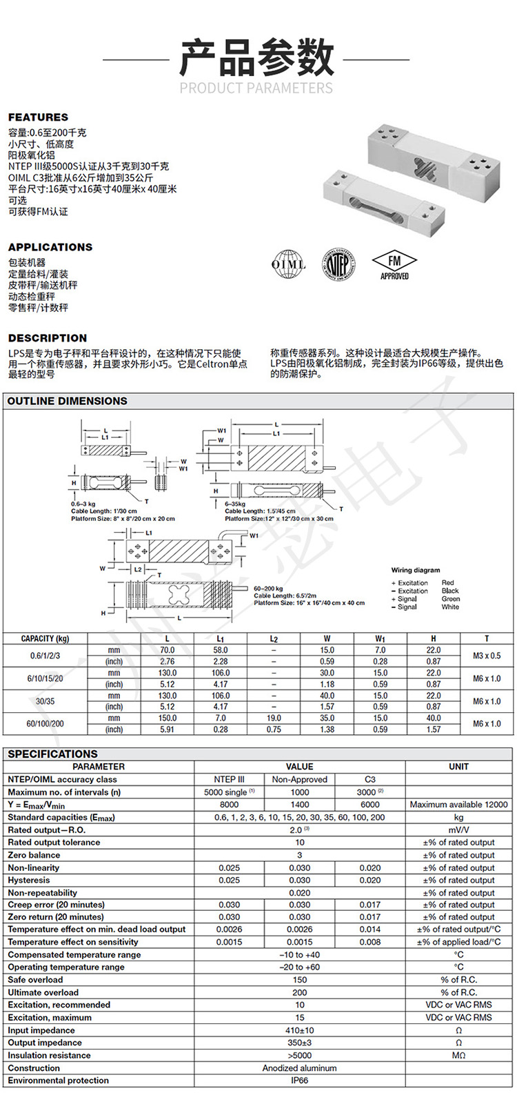 美國Celtron LPS-1kg稱重傳感器主要特性