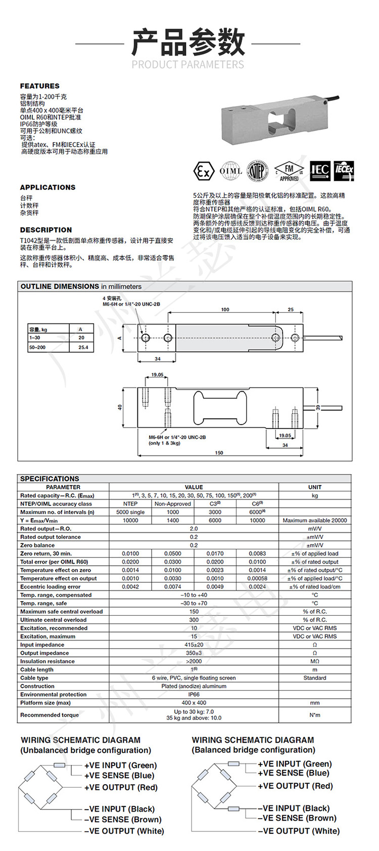 1042-15kg傳感器可選功能:EEx ia IIC T4 - 危險(xiǎn)區(qū)域認(rèn)證,可屏蔽接地型號(hào)包括稱(chēng)重傳感器電纜線(xiàn)