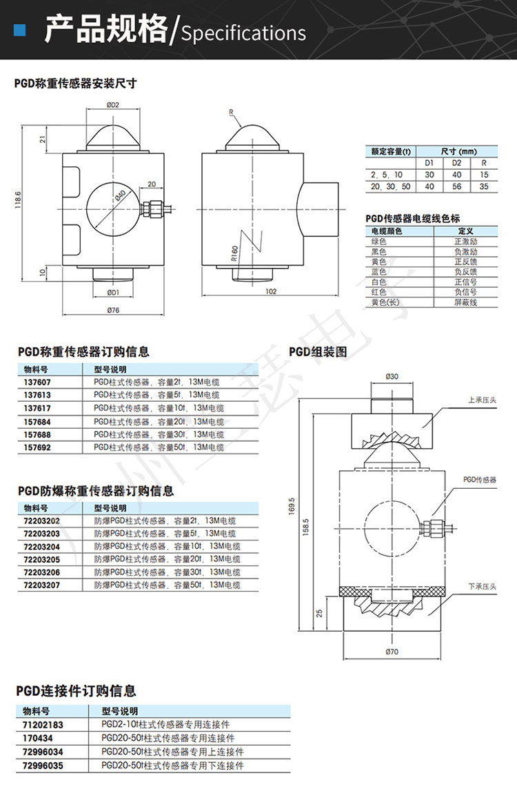 注:PGD-2是梅特勒-托利多傳感器中容量為2t。那么型號(hào)就是PGD-2。以止類推得到PGD系列的所有型號(hào)。