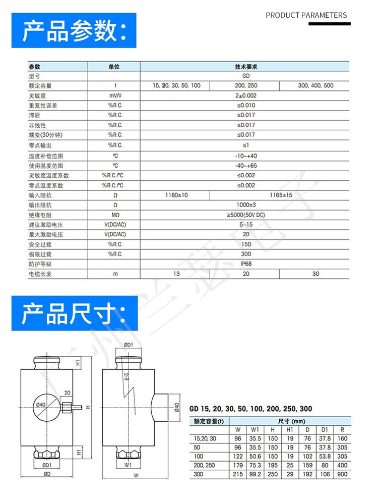 瑞士梅特勒托利多GD-20傳感器基本特性: