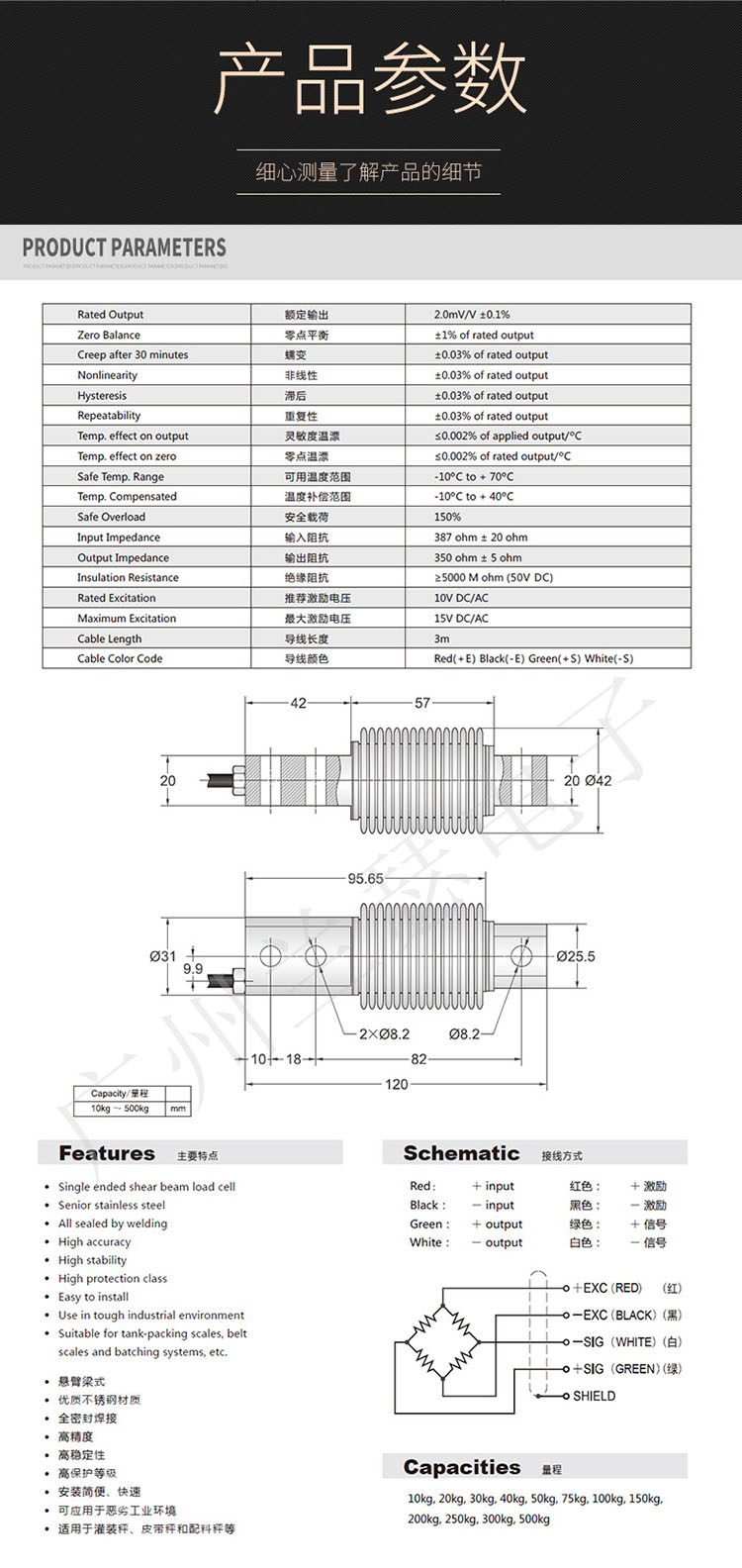 美國(guó)傳力BSH-100kg稱重傳感器技術(shù)參數(shù):