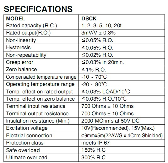 韓國bongshin DSCK稱重傳感器技術(shù)參數(shù):