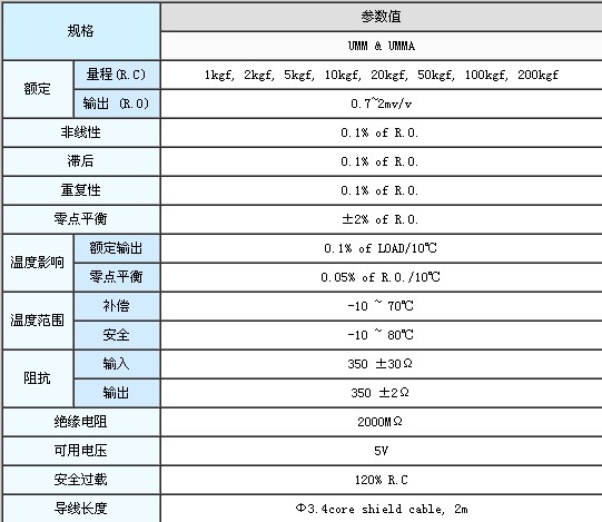 韓國Dacell UMMA-1kgf稱重傳感器主要特性: