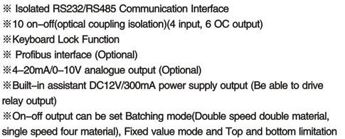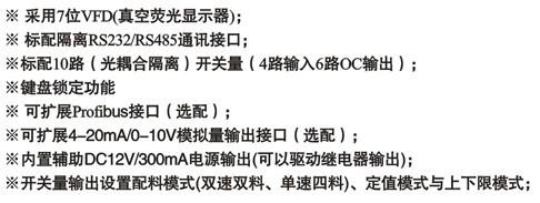 XK3101+控制儀表是面向工業(yè)控制領域的稱重顯示控制器。具有多種竄行通訊接口(Modbus)、開關量輸入與輸出接口、可擴展模擬量接口,開關量輸出可配置四種方式,可以方便用于配料、定值、上下限檢測等場合。豐富的通訊接口能直接與DCS系統(tǒng)連接。儀表采用柜裝式鋁合金外殼,可以方便的嵌入控制柜。