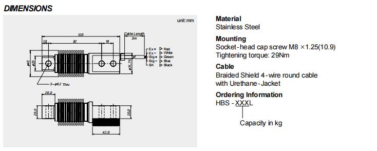韓國(guó)CAS HBS-10L傳感器尺寸圖: