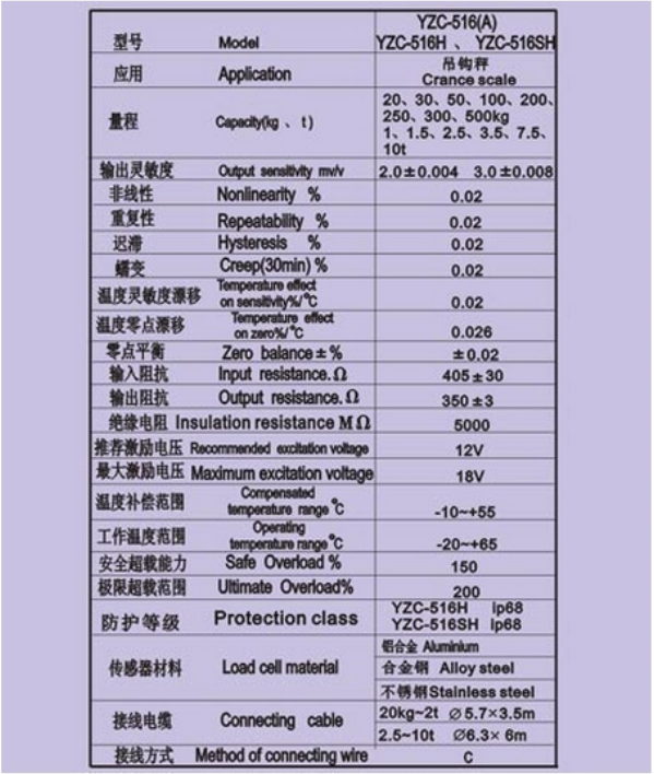 廣測(cè)GUANGCE YZC-516稱重傳感器技術(shù)參數(shù)