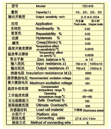 廣測GUANGCE YZC-818稱重傳感器技術(shù)參數(shù)
